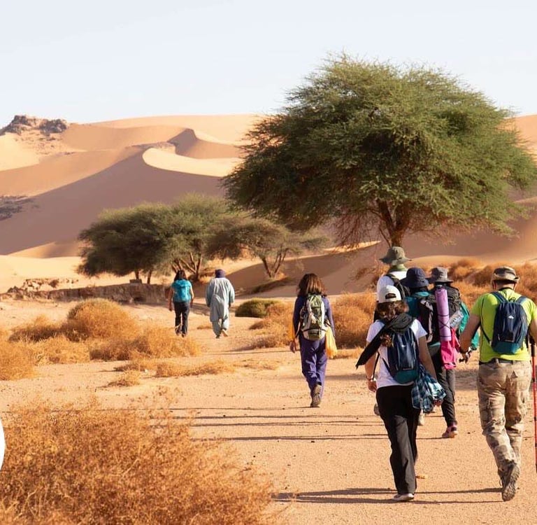 The Tadrart offers a profound connection to nature with its dramatic desert landscapes , towering rock formations , and endless dunes . Exploring this untouched environment , you’ll experience the raw beauty and serenity of the Sahara . Whether traversing its vast expanses or camping under a starlit sky , the Tadrart provides a deep sense of immersion in the desert’s natural splendor.